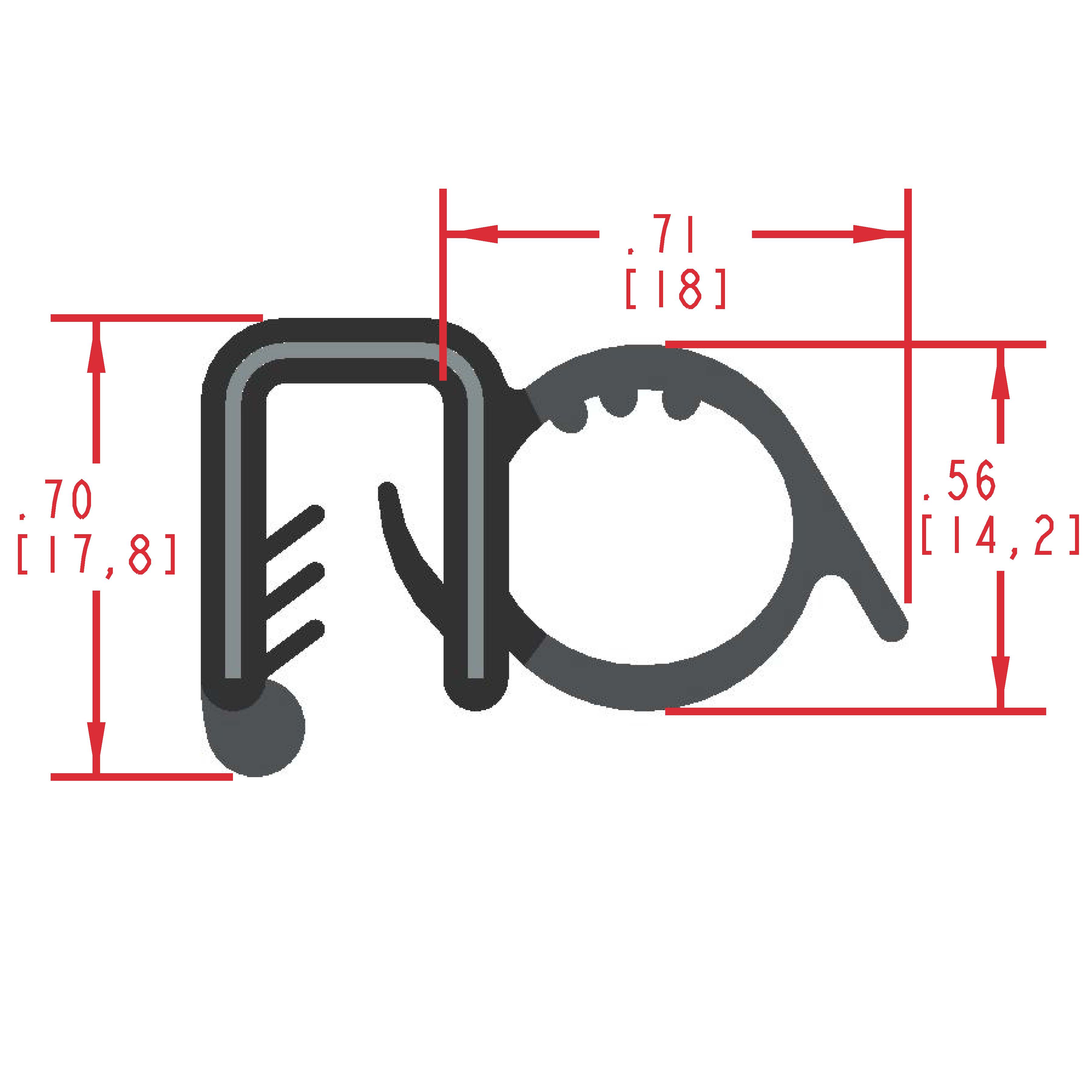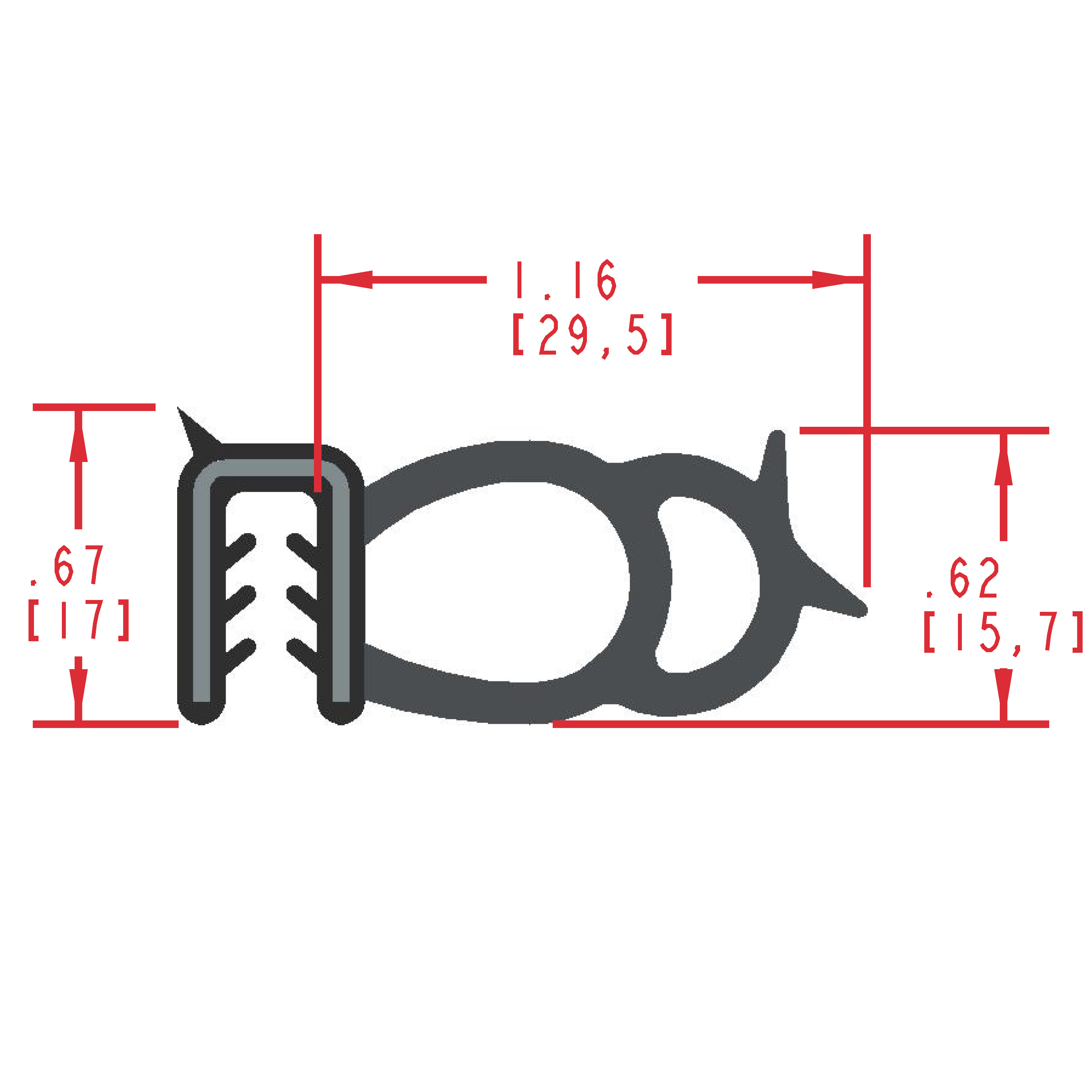 Ebco’s side bulb seals are very similar to the top bulb seals that we stock. It has all the same jobs as the top bulb seal, such as preventing debris, weathering, and noise from entering an opening. The main difference between the two is in the name: instead of the bulb being on top, the bulb is extruded on the side of the edge trim. The metal carrier provides the attachment grip and the bulb fills the gap. The bulb allows for some movement or gap variation while maintaining a tight seal. Bulb geometry can be varied to get the desired bulb compression or door closing force.